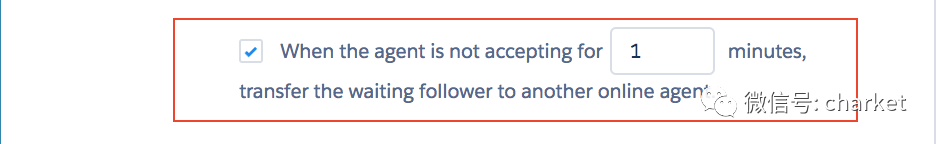 另外,用户可以设置时长,如果客服在设置的时长内没有接入关注者的聊天请求,系统就会自动分配新的客服为其服务。如图所示: