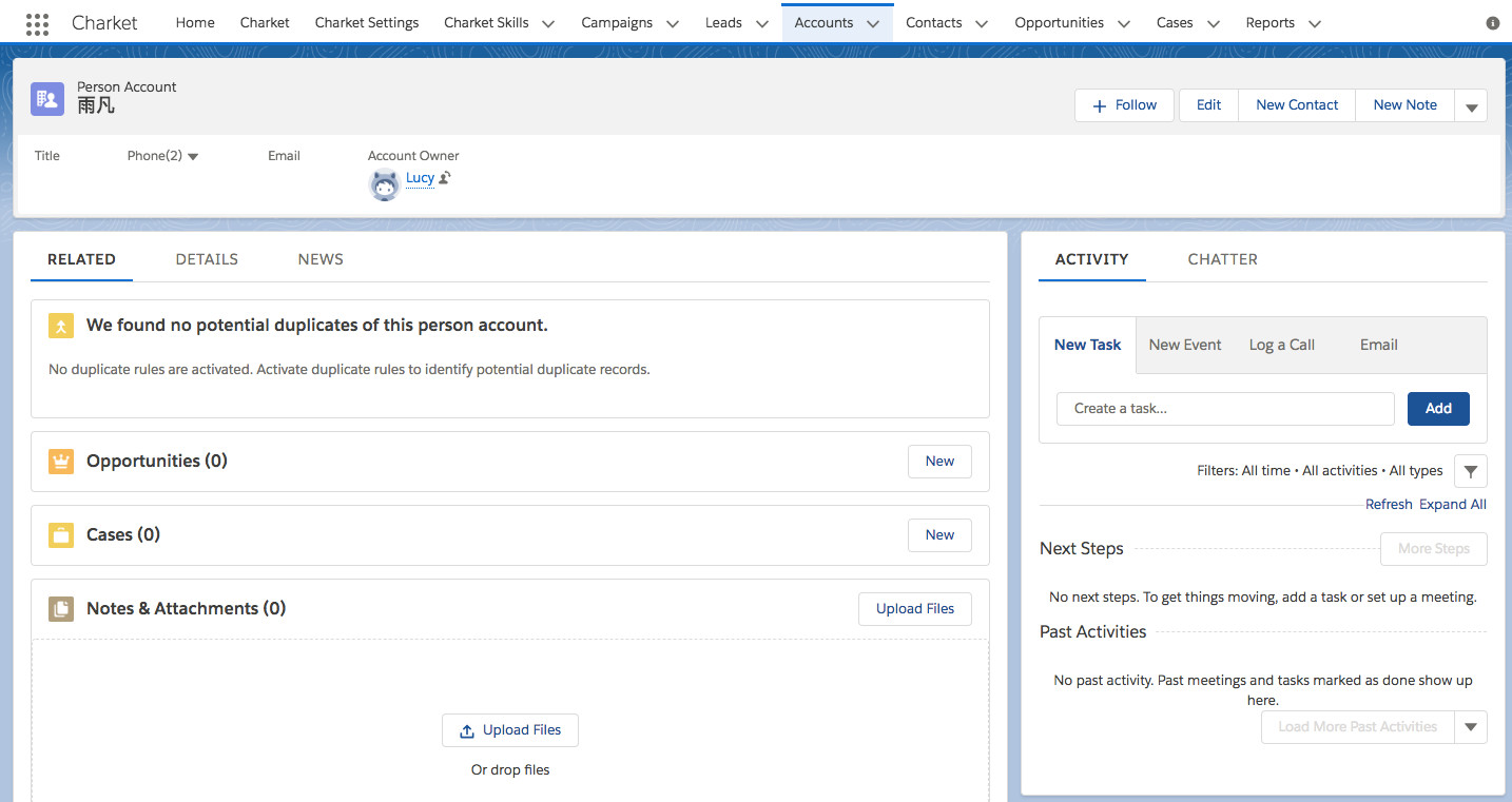 在这种情况下,可以使用 Salesforce 的个人客户功能。新版本中,在 Salesforce 开启了个人客户功能后,Charket 也支持该功能。