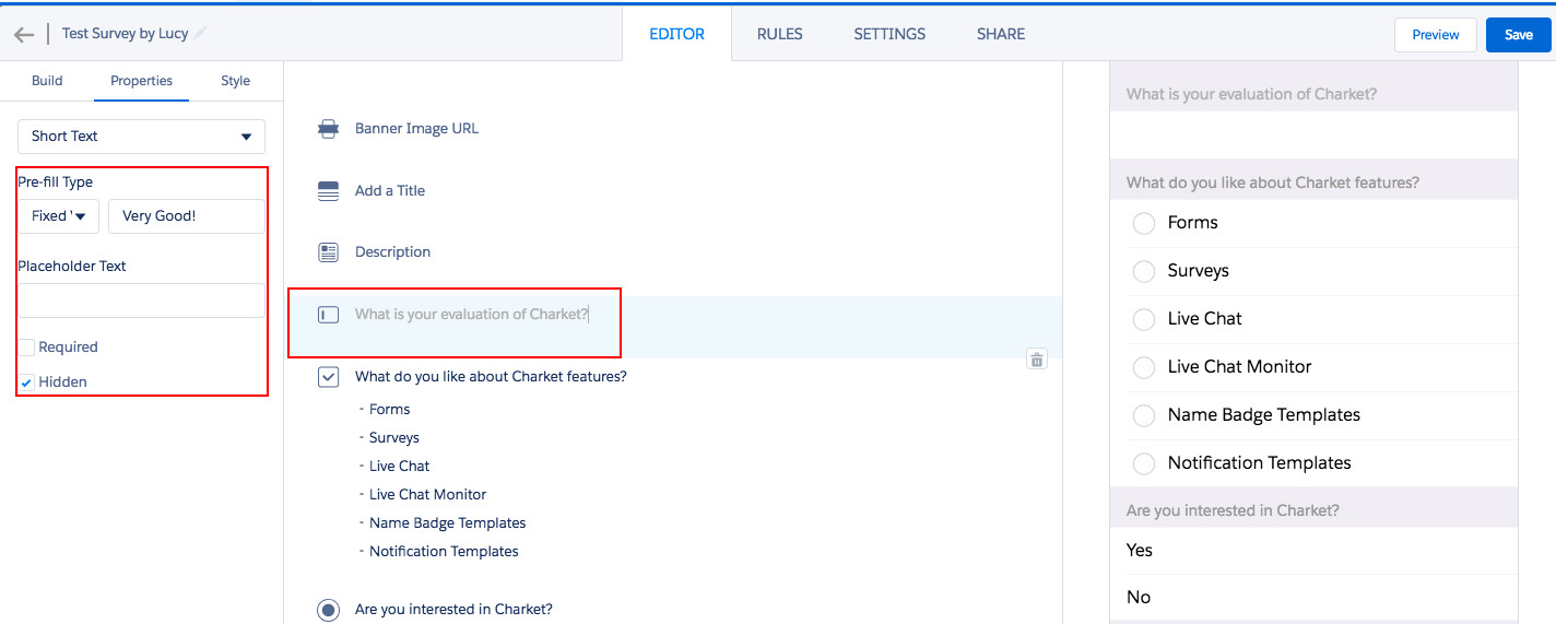 新版本可以对问卷的问题设置预填充类型。此类型包括 URL Parameter 和 Fixed Value。