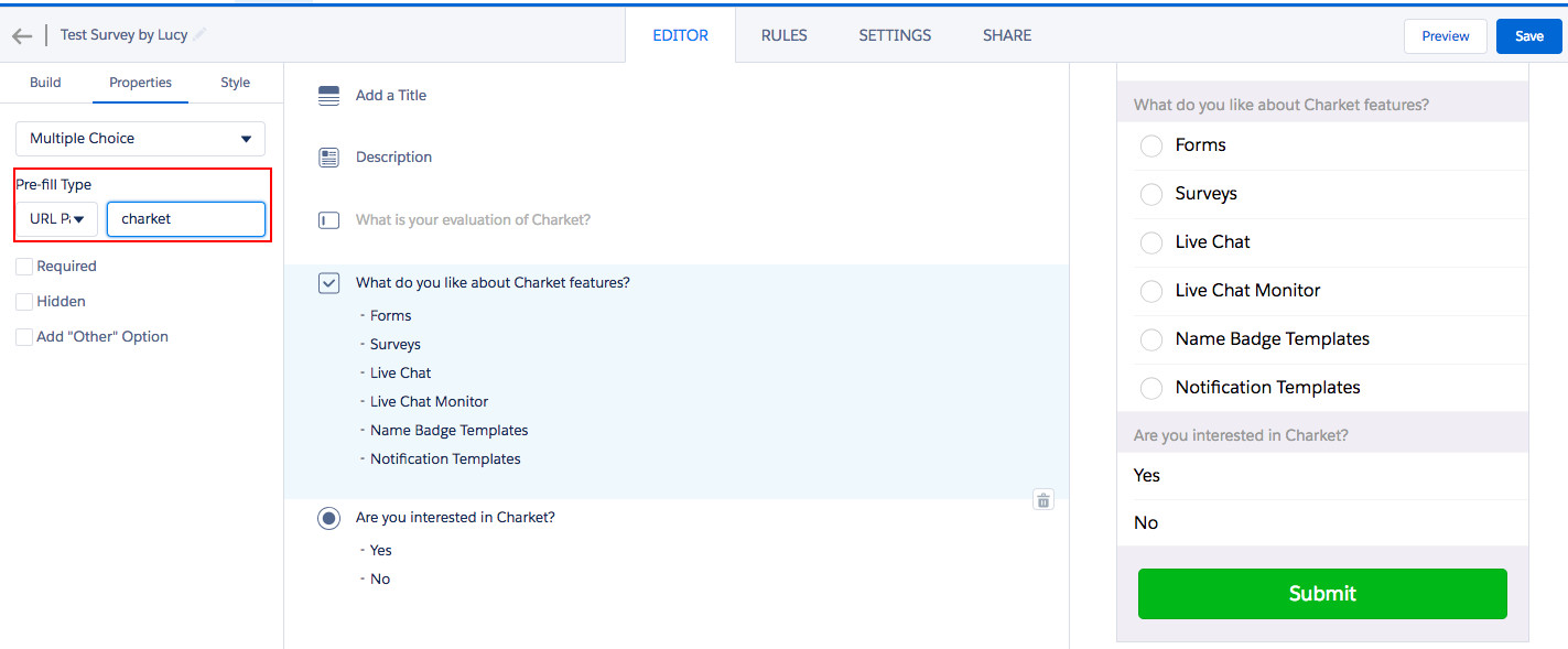 新版本中 Charket 支持关联 Salesforce 的个人客户,并在问卷中支持预填充以及隐藏问题的功能等。