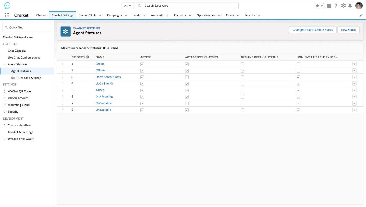 之前的版本我们的产品内置了3种客服状态,但企业的业务流程是各不相同的,为了更好的满足企业不同的业务形态,我们在新版本中加入了自定义客服状态功能。