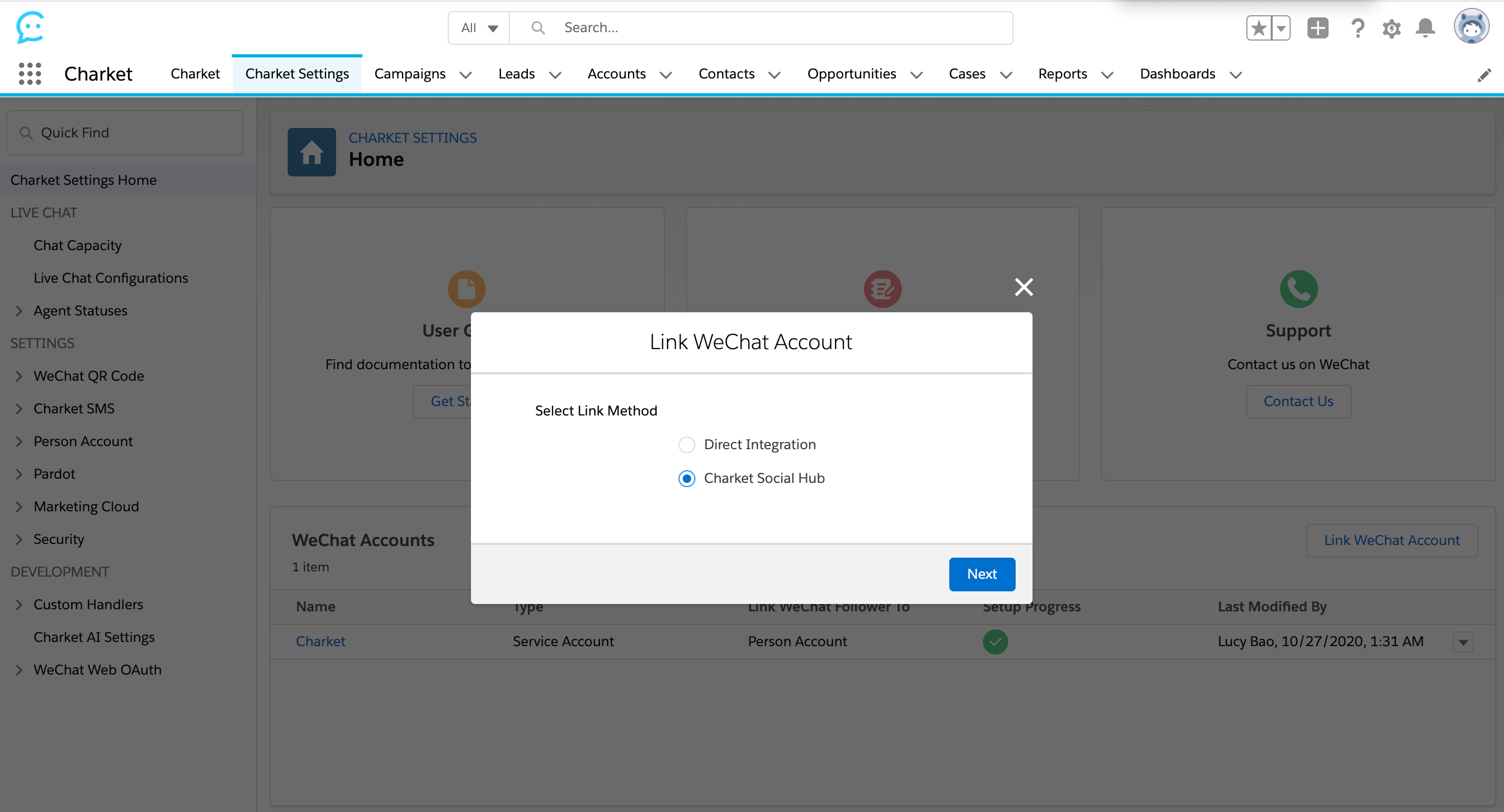 本次版本更新,Charket 提供通过第三方授权的方式来绑定微信公众号。在旧版本中,由于微信后台只支持直连一个系统,如果用户的微信公众号已经在使用另外一套管理系统,在接入了 Charket 之后只能进行二选一。而 v4.3 版本支持了第三方授权,用户可以用多个系统来管理其微信公众号,不影响其原有系统的使用。