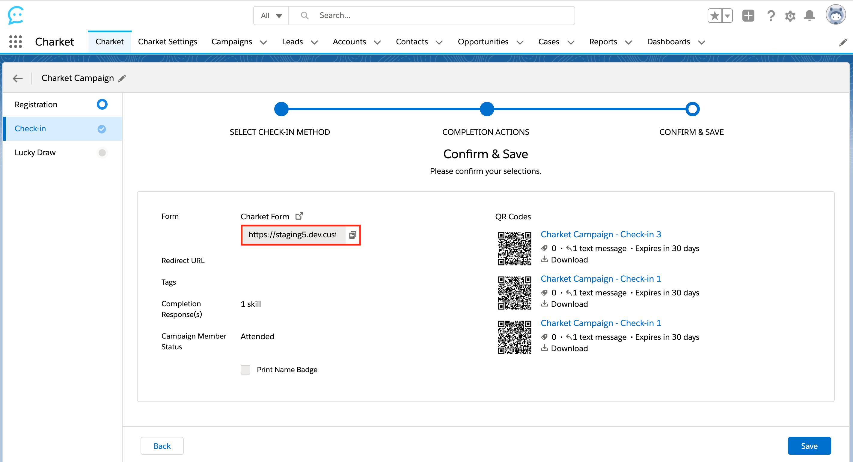 在上一个版本中,WeChat Campaign 现场签到只支持通过扫描二维码完成,升级 v4.3 后支持通过访问 URL 签到。用户可在微信端打开链接填写相关信息后提交完成签到,如果此前已填写过表单,再次打开链接将直接签到成功,无需重复提交,为微信用户提供了更便捷的签到方式。例如,一场线上活动的主办方可以在直播活动开始前发送一个模板消息通知报名者活动即将开始,已经报名成功的用户点击模板消息后,可以直接跳转到活动直播页面。而在 Salesforce 系统中,由于模板消息中置入了签到链接,主办方将能看到哪些用户实际完成了签到。
