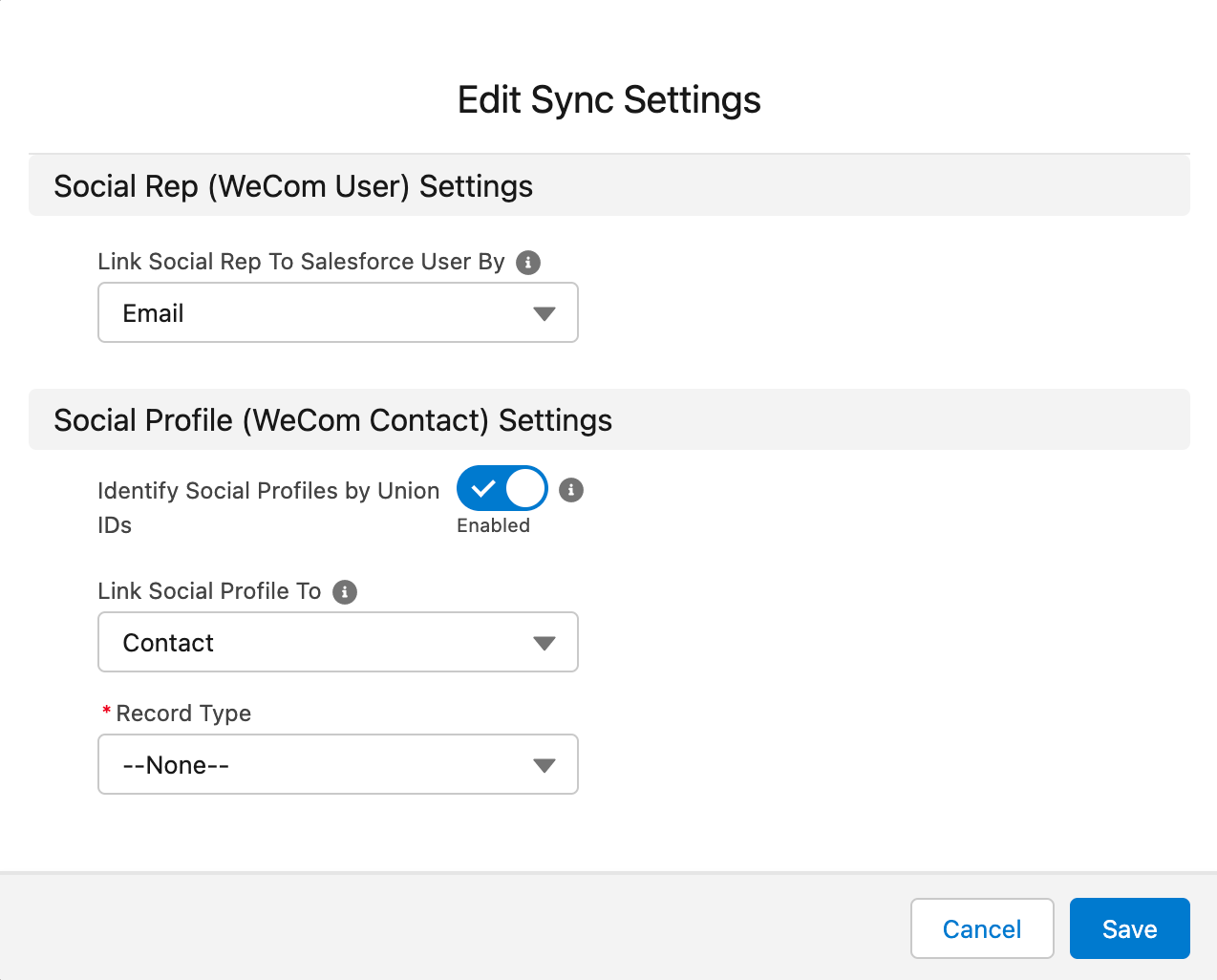 通过 Charket WeCom 可将企业微信的外部联系人同步到 Salesforce 查看和管理。同步时,可以设置通过 Union ID 来匹配 Lead/Contact,查看当前客户在不同微信渠道平台的数据。通过引入多维数据对客户信息进行整合和分析,同时利用 Opportunity,Campaign 等来更精准地做好客户服务。