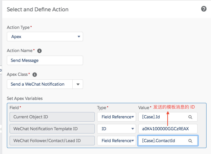 4. 更新 Case 的状态,发送模板消息给联系人