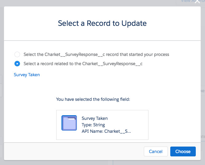 Field 1 是 [Charket__SurveyResponse__c].Charket__SurveyTaken__c