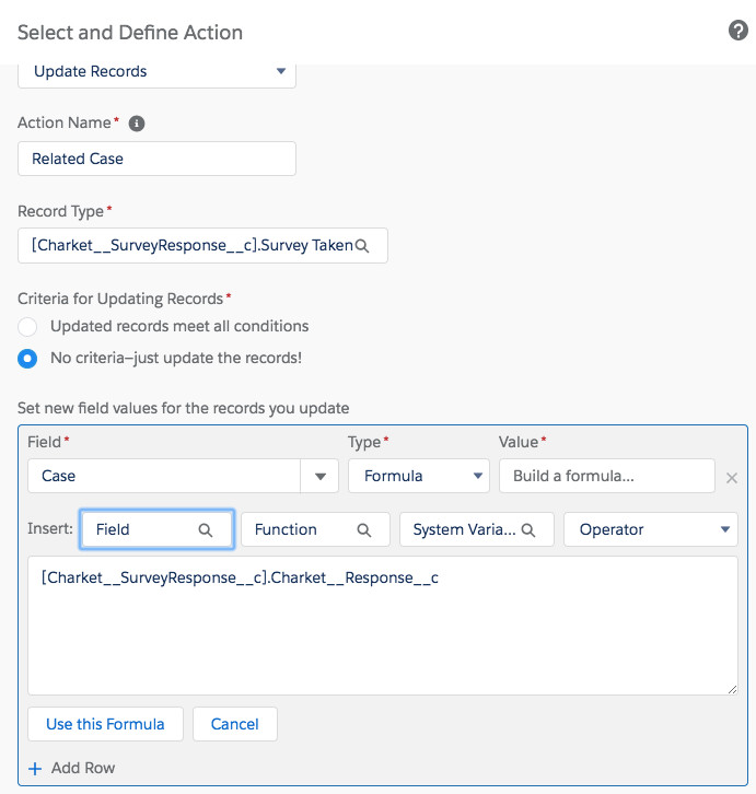 保存后,在 Actions 页面,选择 Action Type 为 Update Records,Record Type 页面的配置如下图所示: